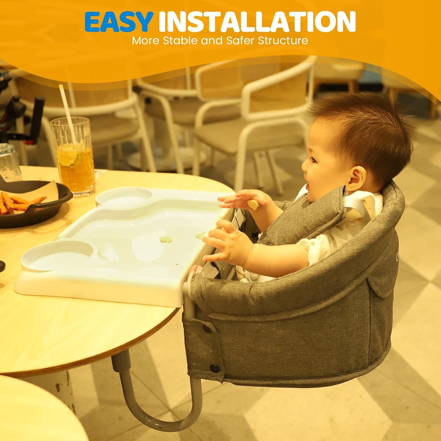 Orzbow Hook-on Seats,Portable Hook on High Chair with 5-Point Safety Harness,Shoulder Strap Mats and Removable Seat Cushion,Stable Clip on Baby Chair for Home and Restaurant (Grey)
