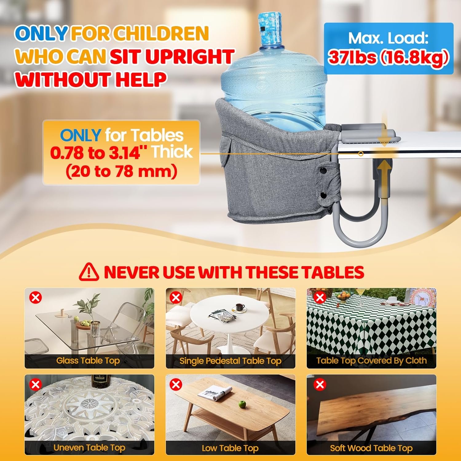 10 reviews for Orzbow Hook-on Seats,Portable Hook on High Chair with 5-Point Safety Harness,Shoulder Strap Mats and Removable Seat Cushion,Stable Clip on Baby Chair for Home and Restaurant (Grey)